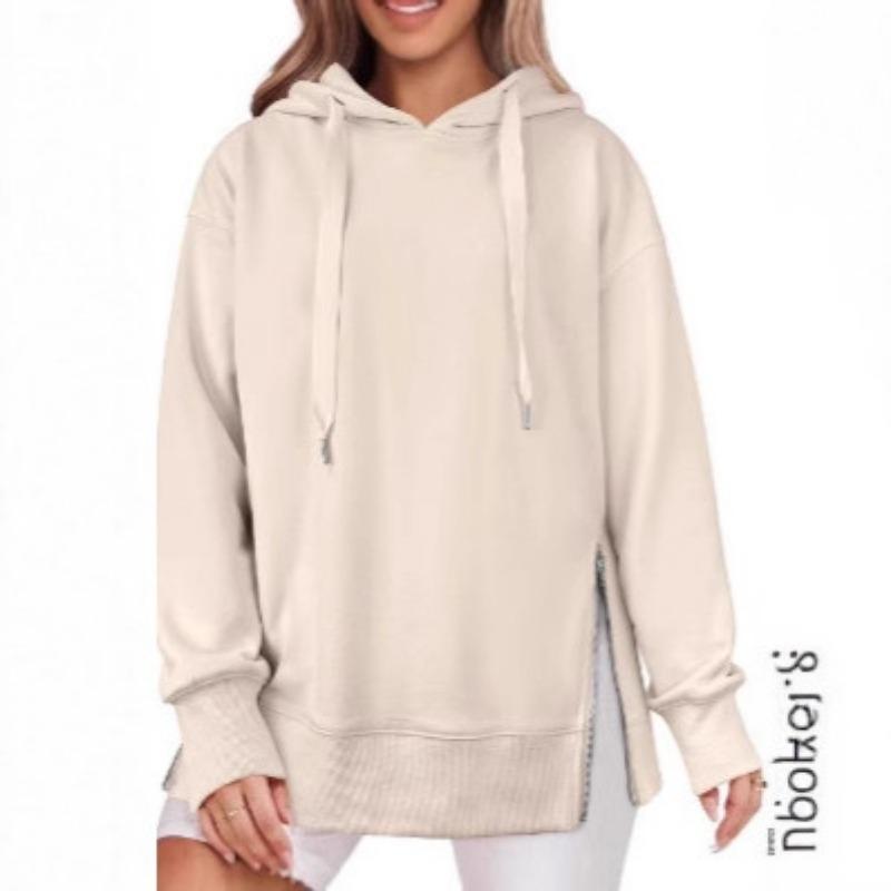 Europäisch Amerikanisch Herbst Winter Neuer Stil Spleißdesign Saumschlitz Locker Kapuzenpullover Top