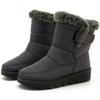 Stiefel Damenstiefel Fell Botas Mujer Superwarme Winterstiefel für Schnee Damen Niedrige Absätze Winterschuhe Frau Schwarzer Gummistiefel