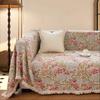 Französischer Retro-Stil Sofaschal Rosa Blume Jacquard Einteiliger Sofabezug mit beiger Quaste Sofadecke