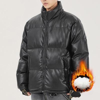 Herren Winter PU Leder Spleiß Stehkragen Pufferjacke
