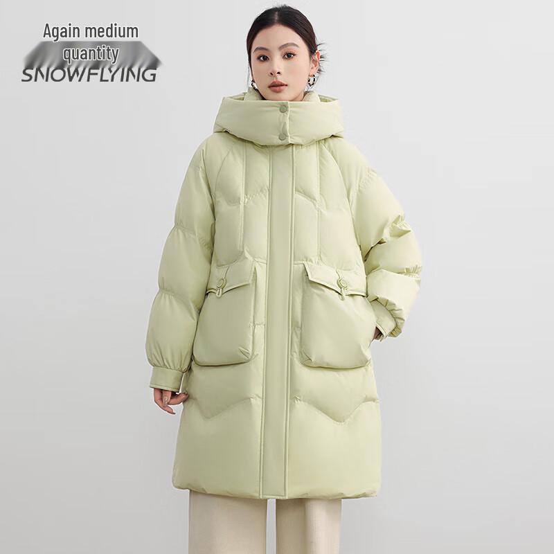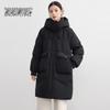 Dicke mittellange Damen-Daunenjacke mit Kapuze