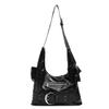 Neue High-End Y2K Schwarze Texturierte Achseltasche Retro Funktionale Umhängetasche Nische Trendy Pendler Große Tasche
