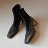 Retro Patchwork Elastische Schuhe Damen Herbst Winter Modisch Vielseitig Dicke Hohe Absätze Kurze Stiefel Bequeme Sockenstiefel