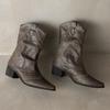 Vintage Damen Stiefeletten mit spitzer Zehenpartie, modische Nieten, Schlupfschuhe, Damen, dicker Absatz, Western Cowboy Stiefeletten De Mujer