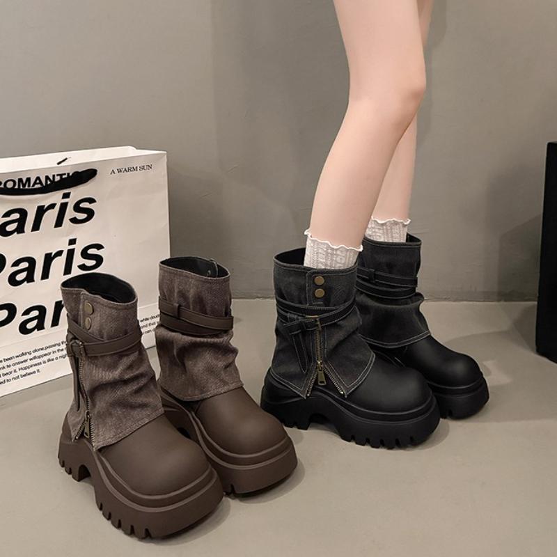 Winter Gürtelschnalle Damen Stiefeletten Mode Klobiger Plateauabsatz Schuhe Damen Punk Vintage Kurze Stiefeletten De Mujer