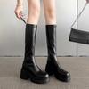 Hottie Plateau Dicke Absätze Damen Ritterstiefel Mode Gemütliche Weiche Lederschuhe Damen Punk Lange Stiefeletten De Muje