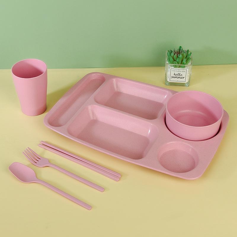 Studenten- und Kinderfächerplatte, Suppenschüssel, Gabel, Löffel, Essstäbchen, Wasserbecher-Set, Büroangestelltenplatte, Fettreduzierende Platte