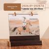 2026 Jahr des Pferdes Chinesischer Stil Holz Schreibtischkalender mit Doppelringständer