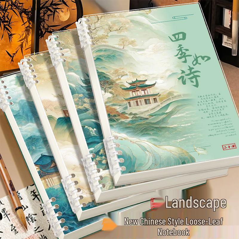 Kratzfestes, abnehmbares B5-Notizbuch im chinesischen Stil mit loser Blattbindung, 16K, schlichtes Design mit schülerfreundlicher Ringbindung.