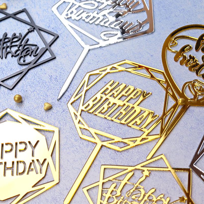 50 Stück Goldene Acryl-Kuchenstecker - Geburtstag, Festival, Muttertagsfeier