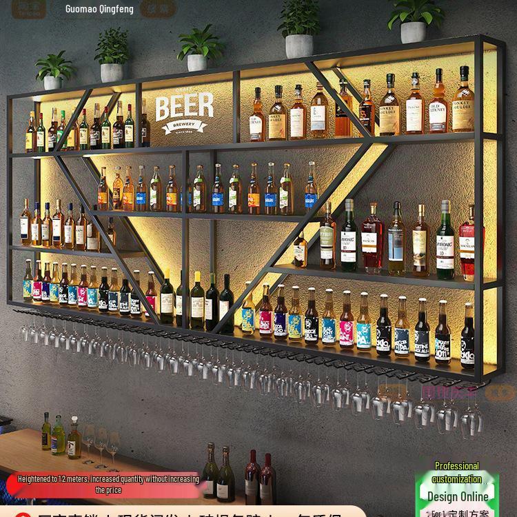 Industrial Wall-Mounted Wrought Iron Wine Rack for Bars & Restaurants - Creative Multifunctional Display Cabinet