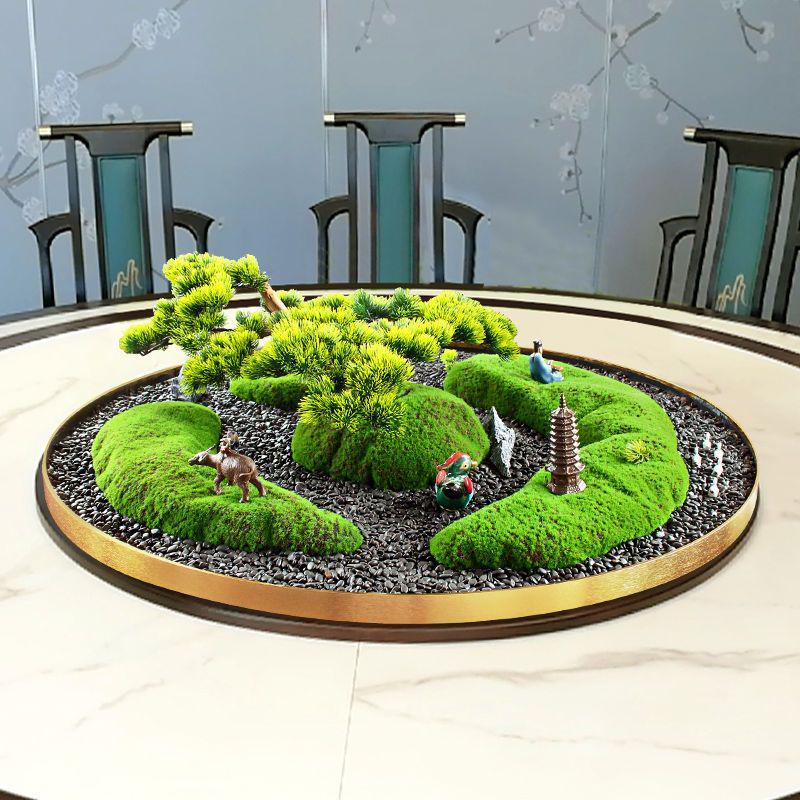 Large Hotel Dining Table Bonsai Centerpiece: Turntable Floral Art Resin Ornament.