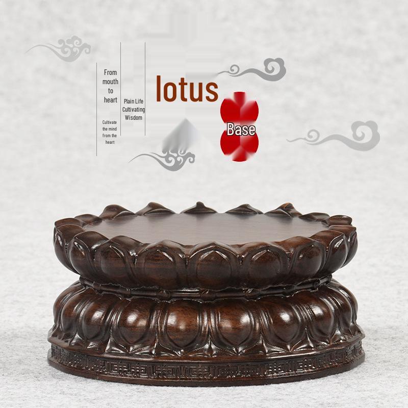Ebenholz Guanyin Bodhisattva Lotus Sockel, Massivholz geschnitzter runder Opfertablettständer