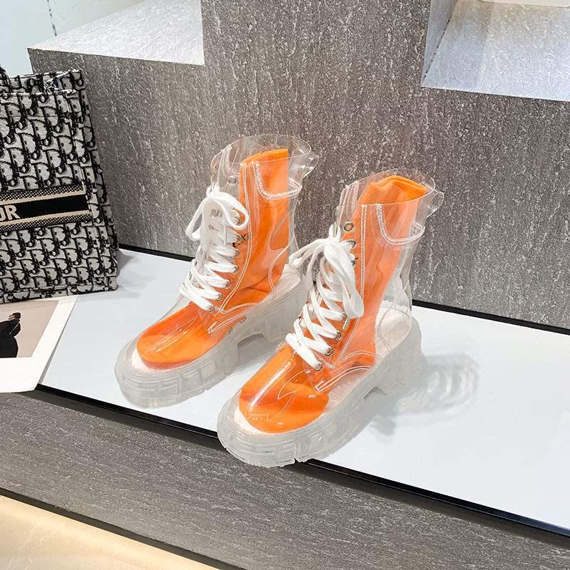 Transparente Schnür-Martin-Boots im koreanischen Stil: Kristallsohle, Knöchel-Sneakers mit dicker Sohle für Damen und Studentinnen - Modische Regenstiefel