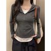 Real shot half zipper hooded long-sleeved T-shirt women's autumn and winter slim-fit polished warm bottoming shirt with fake two pieces inside