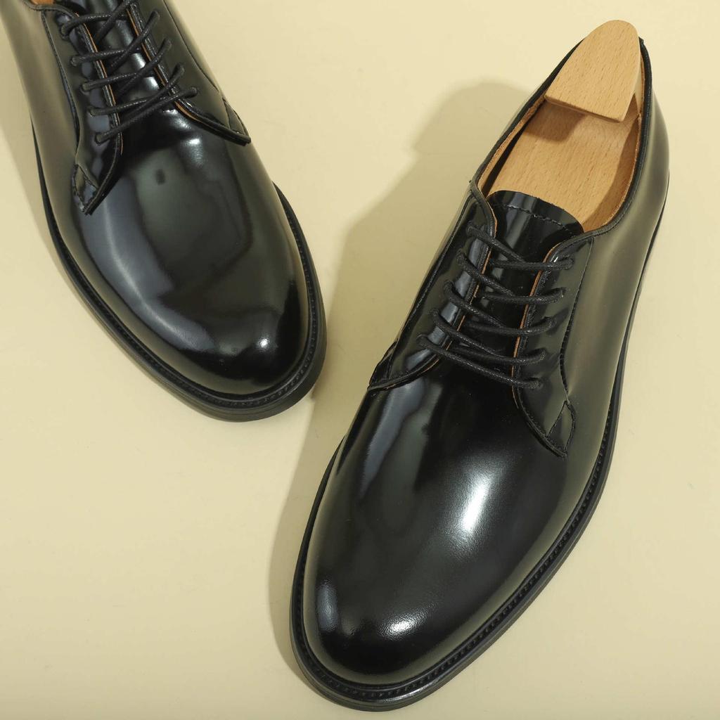 Erleben Sie zeitlose Eleganz und Raffinesse mit diesen schwarzen Business-Schuhen mit runder Spitze.. Diese Derby-Schuhe sind fachmännisch für Herren gefertigt und aus hochwertigem Vollnarbenleder gefertigt, das sowohl Langlebigkeit als auch einen klassischen Look bietet, der nie aus der Mode kommt.. Entworfen mit einer robusten Gummisohle, bieten sie ausgezeichnete Traktion und Komfort, was sie perfekt für lange Stunden auf den Beinen macht.. Der Schnürverschluss sorgt für einen sicheren Sitz und ermöglicht es Ihnen, sich mit Selbstvertrauen und Leichtigkeit zu bewegen.. Ideal für jeden formellen Anlass oder professionellen Rahmen, diese Schuhe sind eine unverzichtbare Ergänzung für jede Garderobe.