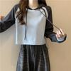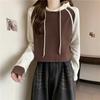 Real shot color matching hooded small short cotton sweater women's thin design long-sleeved top