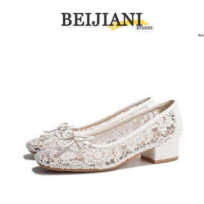 BEIJIANI 333-27 Damen Atmungsaktives Mesh Spitzkarree Mary Jane Sandalen