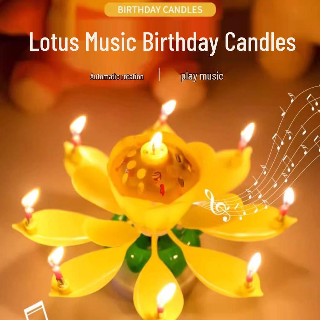 Lotus Rotating Music Birthday Candle for Cake - Advanced Design for Girls