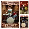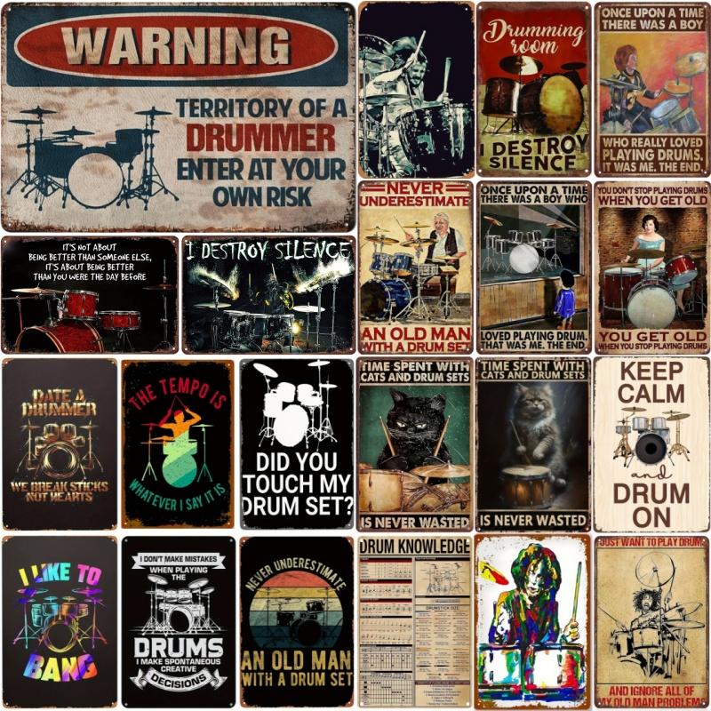 Vintage Schlagzeuger Anhänger Metall Blechposter Schlagzeug Metall Blechschild Poster Platte für Schlagzeuger Café Garage Fitnessstudio oder Boxclub Dekor