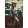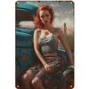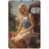 Metall Blechschilder Pinup Auto Mädchen Wanddekoration Plakette Vintage Kunst Poster Eisenmalerei für Man Cave Zuhause Café Garage Club Bar