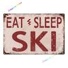 Essen Schlafen Skifahren Metallschild Skifahren Blechschild Wanddeko für Sport Hütte Lodge Berg Skifahren Deko Perfektes Dekoschild 8x12inch