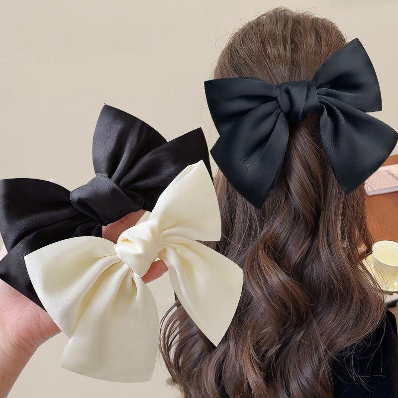 Simple Black Satin Bow Ponytail Clip For Women Girls Light Luxury Hair Clip Temperament Exquisite Hairpin Hair Accessories