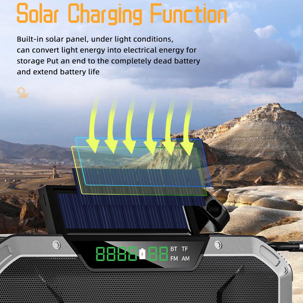 10000mAh Outdoor Solar Radio with Speaker Solar/Hand Crank Charging W/ Flashlight SOS Alarm Headphone Jack for Outdoor Camping