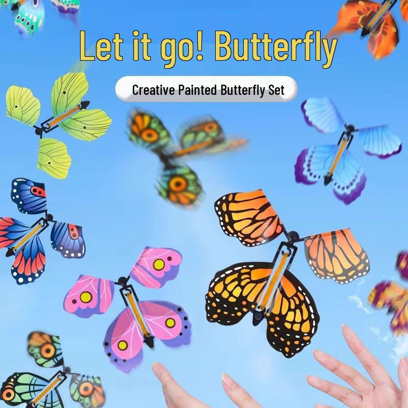 Flying Butterfly Children's Outdoor Gift Set: Bamboo Dragonfly, Boomerang & Spraying Flower Camping Toys