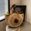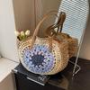 Seaside vacation straw bag 2025 new contrasting color splicing woven bag large-capacity women's bag beach shoulder women's bag