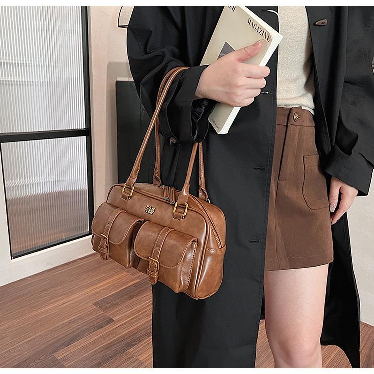 Retro niche portable bowling bag for women 2025 autumn new trendy Korean underarm bag large-capacity commuter bag