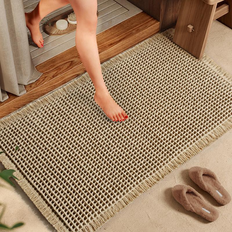 Waffel Badematte Rutschfest Ultra-Saugfähig Polyester-Mischteppich Maschinenwaschbar mit Quasten für Badezimmerboden