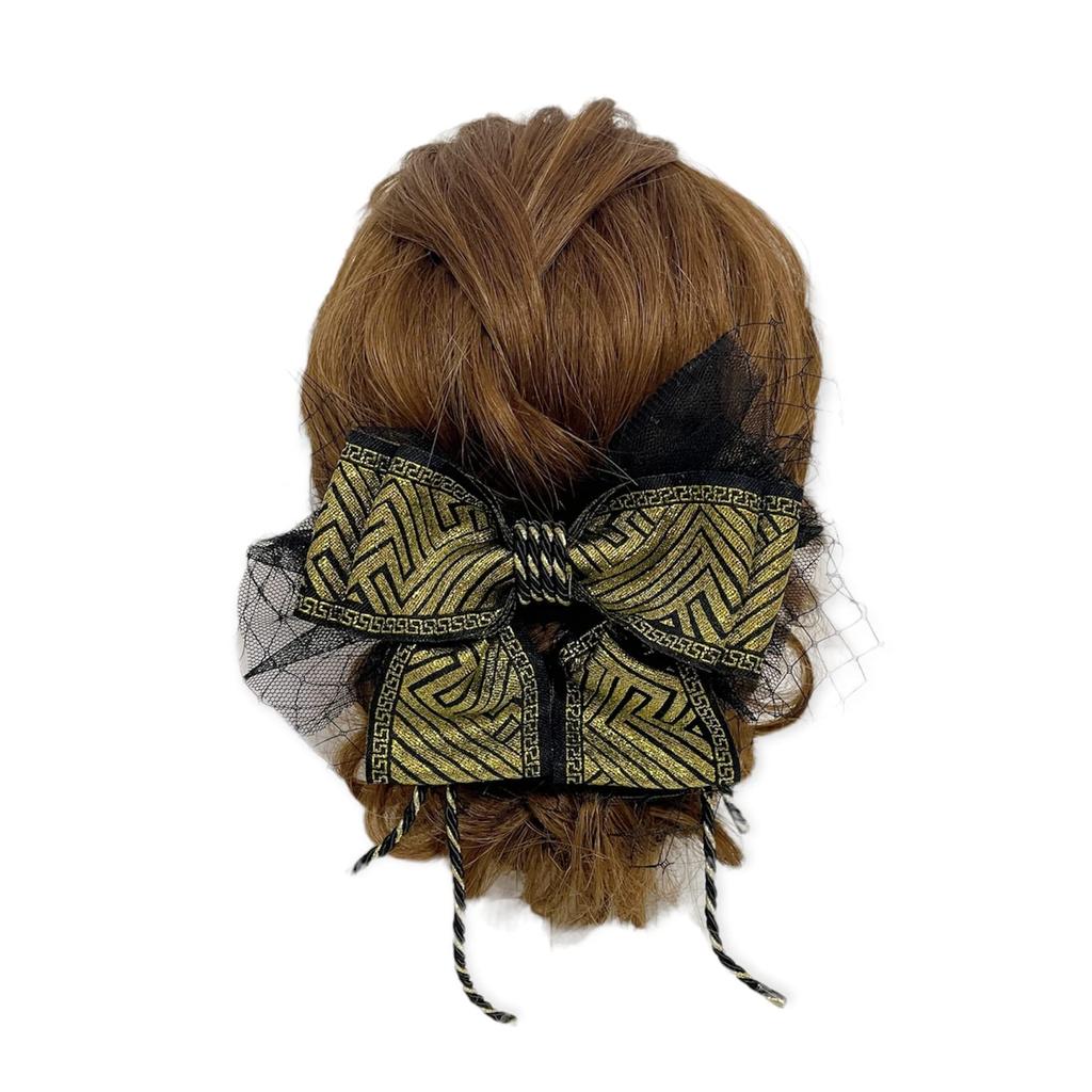 Black and gold tulle ribbon hair ornament for Japanese traditional perfect for ceremonies and Braided black and gold ribbon hair head clothing,