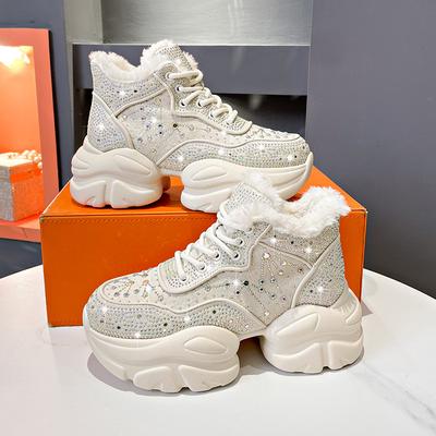 Mode Damenschuhe Neue Strass Damen Sneakers Diamant Atmungsaktiv Luxus Designer Casual Plateauschuhe