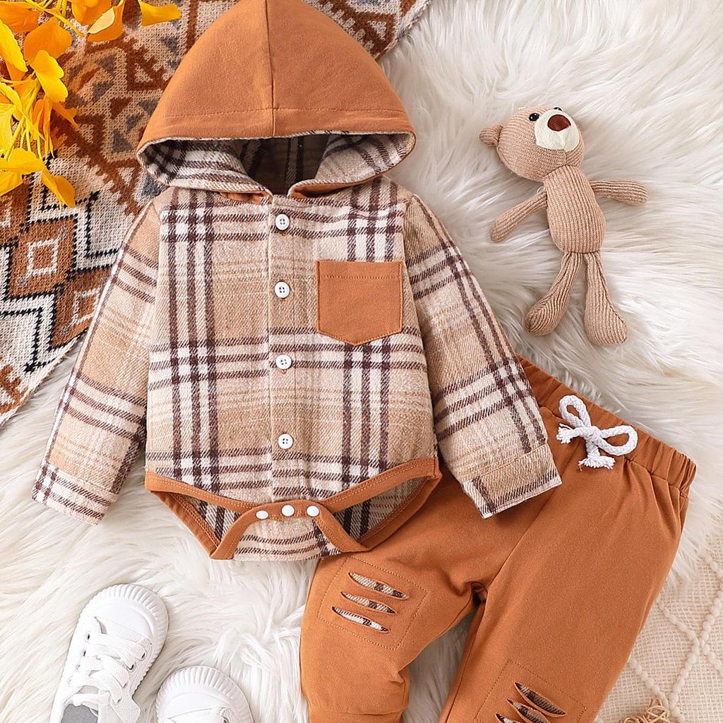 Dieses stilvolle Set ist perfekt, um Kinder in den kühleren Monaten warm und modisch zu halten.. Das langärmlige Kapuzenshirt besticht durch ein charmantes Karomuster mit Farbverlauf und verleiht jeder Kindergarderobe einen Hauch verspielter Raffinesse.. Gepaart mit einem bequemen Strampler mit langen Hosen, ist dieses Outfit aus strapazierfähigem Polyester gefertigt, was sowohl Weichheit als auch einfache Pflege gewährleistet.. Ideal für Herbst und Winter, kombiniert dieses Set Komfort und Trend, was es zu einem Must-have für jeden kleinen Trendsetter macht.