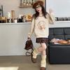 Mädchen 2025 Koreanischer Stil Frühlingsoutfit: Langarm-Sweatshirt & Plisseerock-Set