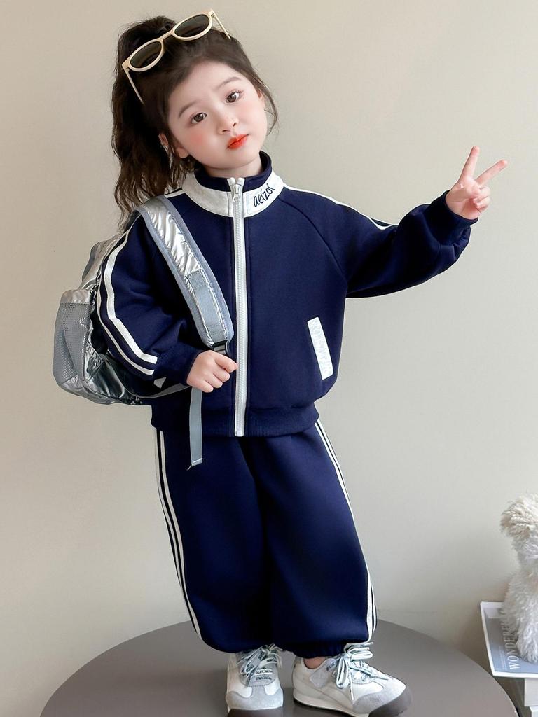 Dieses charmante zweiteilige Set für kleine Mädchen ist perfekt für Frühling und Herbst.. Das Set besteht aus einem stilvollen Oberteil mit Reißverschluss und passender Hose, beide mit langen Ärmeln, um an kühleren Tagen Komfort und Wärme zu bieten.. Dieses Sportbekleidungsset aus einem weichen Baumwollmischgewebe sorgt für Atmungsaktivität und Bewegungsfreiheit und ist somit ideal für aktive Spiele oder lässige Ausflüge.. Sein vielseitiges Design und die bequeme Passform machen es zu einer entzückenden Ergänzung für die Garderobe jedes kleinen Mädchens.