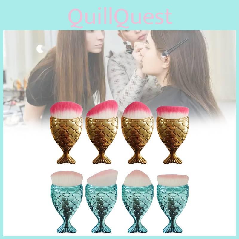 Dieser Make-up-Pinsel verfügt über ein Meerjungfrauenschwanz-Design mit Fischschuppen-Details und ist aus strapazierfähigen Nylonborsten gefertigt.Mit einer Gesamtlänge von 10 cm und einem 2,5 cm langen Pinselhaar bietet er eine präzise Anwendung für Foundation und zum Verblenden.Der leichte Kunststoffgriff, 8,3x4,5 cm, ist leicht zu tragen und zu manövrieren.Ideal für tägliche Make-up-Routinen oder den professionellen Gebrauch, er ist verformungsbeständig und lässt sich leicht mit einem feuchten Tuch reinigen.
