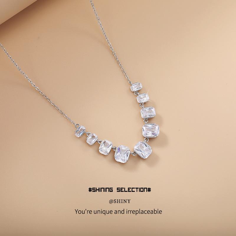 Quadratische Diamant Kupferlegierung Halskette - Europäischer & Amerikanischer Stil, Zwei Farben, Modisch & Vielseitig, Nischendesign, Zeitlose Eleganz.