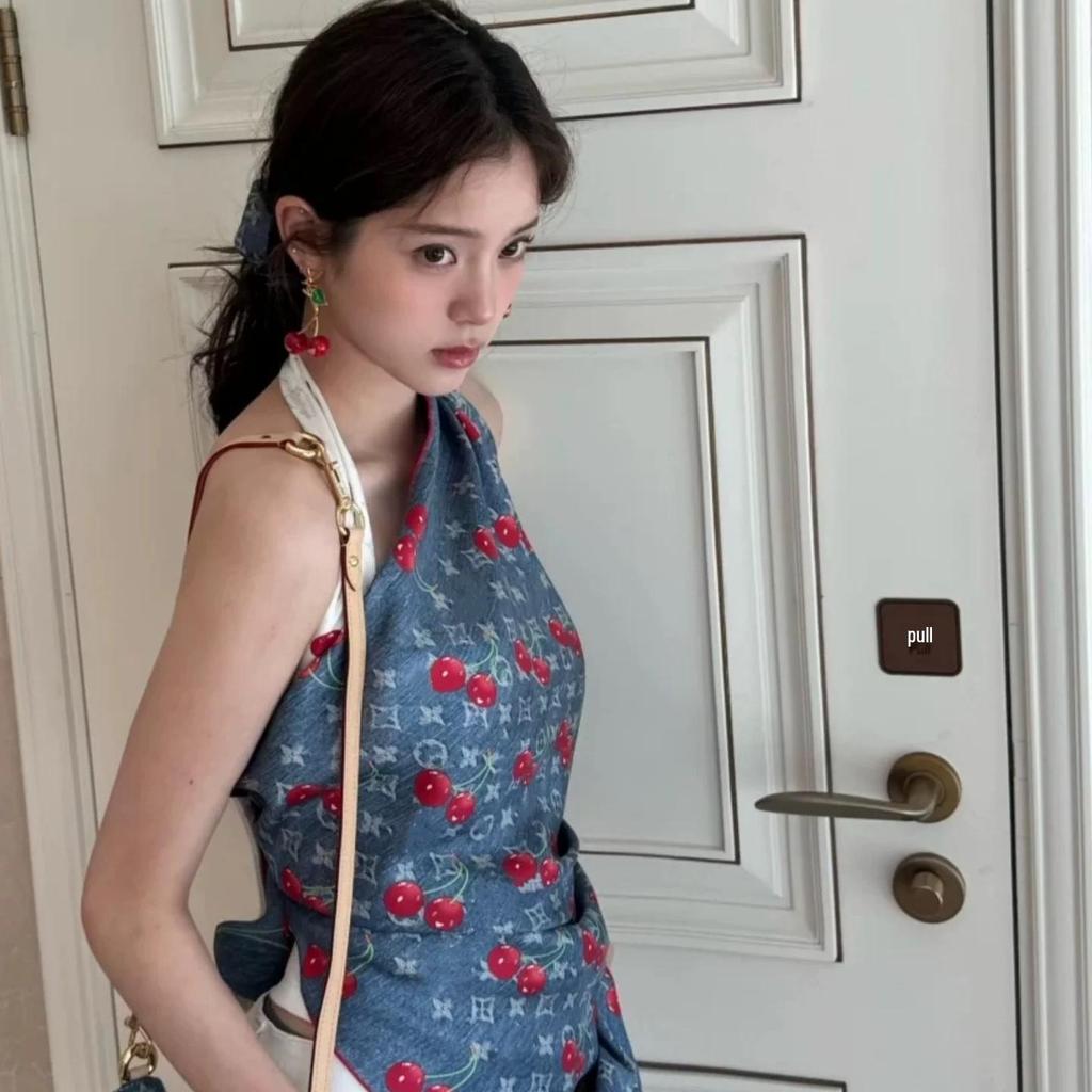 Ouyang Nana Inspiriertes Kirschblüten-Trägerloses Quadratisches Seidentuch - Zweifach verwendbarer Schal und Wickeltuch, Erhältlich in drei Farben