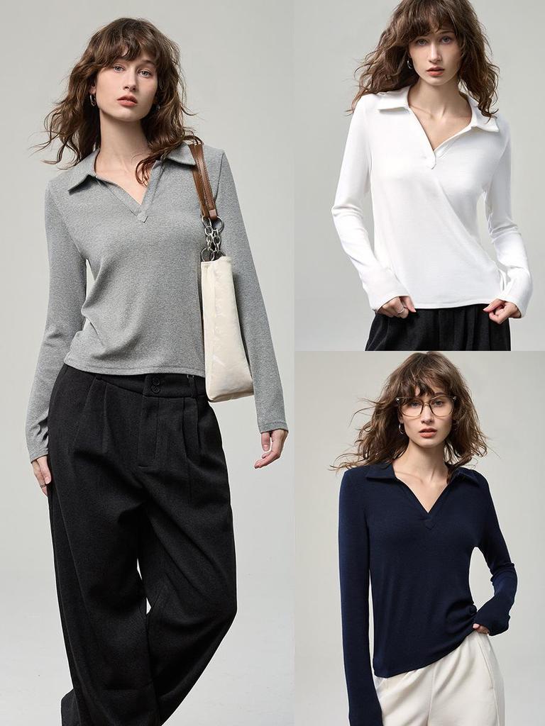 Erleben Sie unvergleichlichen Komfort und Stil mit diesem Damen Langarmshirt mit weichem V-Ausschnitt.. Dieses Oberteil aus hochwertiger Viskosefaser bietet ein luxuriöses Tragegefühl und eine schmeichelhafte Passform.. Der einzigartige Reverskragen unterstreicht sein anspruchsvolles Design und macht ihn zu einer vielseitigen Ergänzung für Ihre Herbstgarderobe.. Perfekt als Basisschicht, sein schlankmachender Effekt ergänzt mühelos jedes Outfit und bietet den ganzen Tag Wärme und Weichheit.
