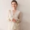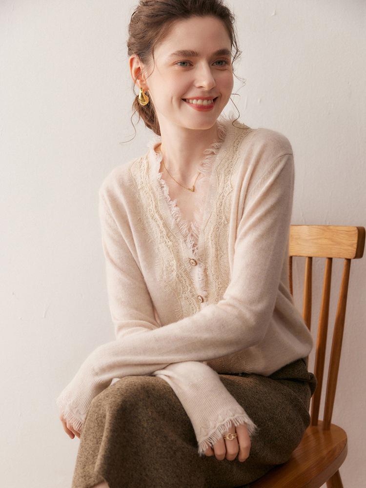 2025 Herbst/Winter Damen V-Ausschnitt Kaschmir Spitzen Strickjacke