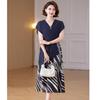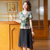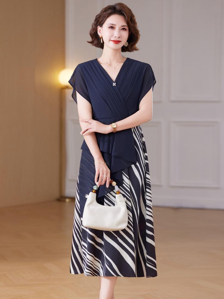 Sommer-Midikleid im chinesischen Stil für junge Mütter – Kurzärmlig, locker, Fake-Zweiteiler-Design für Frauen mittleren Alters