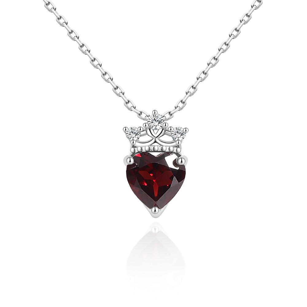 Elegante Damenkette aus 925er Sterlingsilber mit Herzanhänger aus Granat (8,00 mm) im Kronen-Design. Ein edles Schmuckstück, ideal als Verlobungsgeschenk.