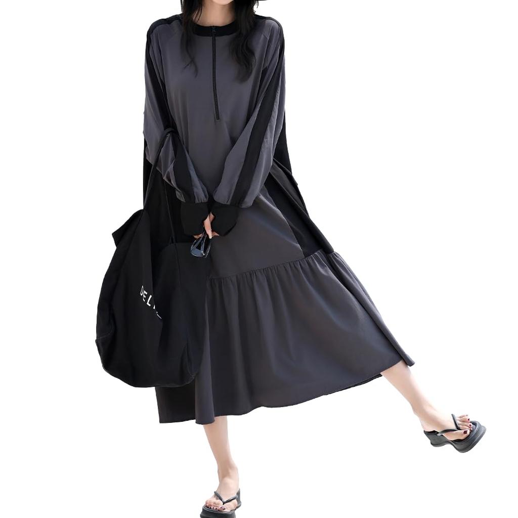 Inhalt einstellen: 1 Rash Guard Einteiler. Ziehen Sie es für UV-Schutz über Ihren Badeanzug.. Ein einzigartiges Rashguard-Kleid! Lang, locker geschnitten, mehrstufig, A-Linie, zweifarbig, Halbzip, ohne Kapuze. Frühling Sommer