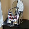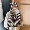 Korean casual lazy style canvas bag women's 2025 new large-capacity striped bucket bag fashionable shoulder bag