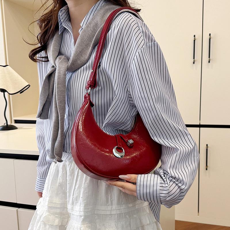 Simple and fashionable shoulder handbag 2025 spring new niche high-end commuter underarm bag Korean crescent bag