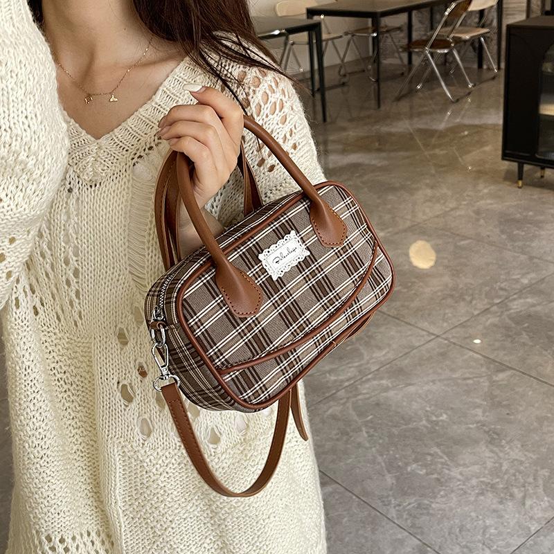 Koreanische Version Mode Handtasche kleine Tasche Damen 2025 neue Leinwand kariert kleine quadratische Tasche Schulter Umhängetasche