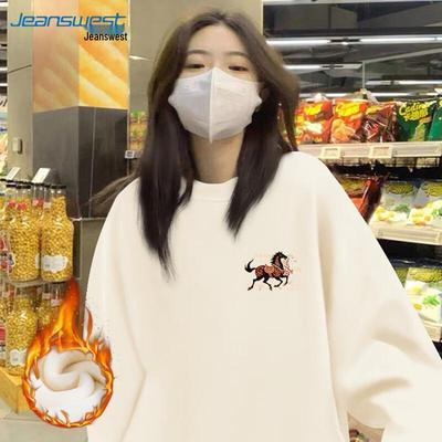 JEANSWEST Damen Locker Geschnittenes Fleece-gefüttertes Sweatshirt Jahr des Pferdes