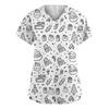 Damenmode V-Ausschnitt Kurzarm Overalls mit Taschen Print Tops Kleidung